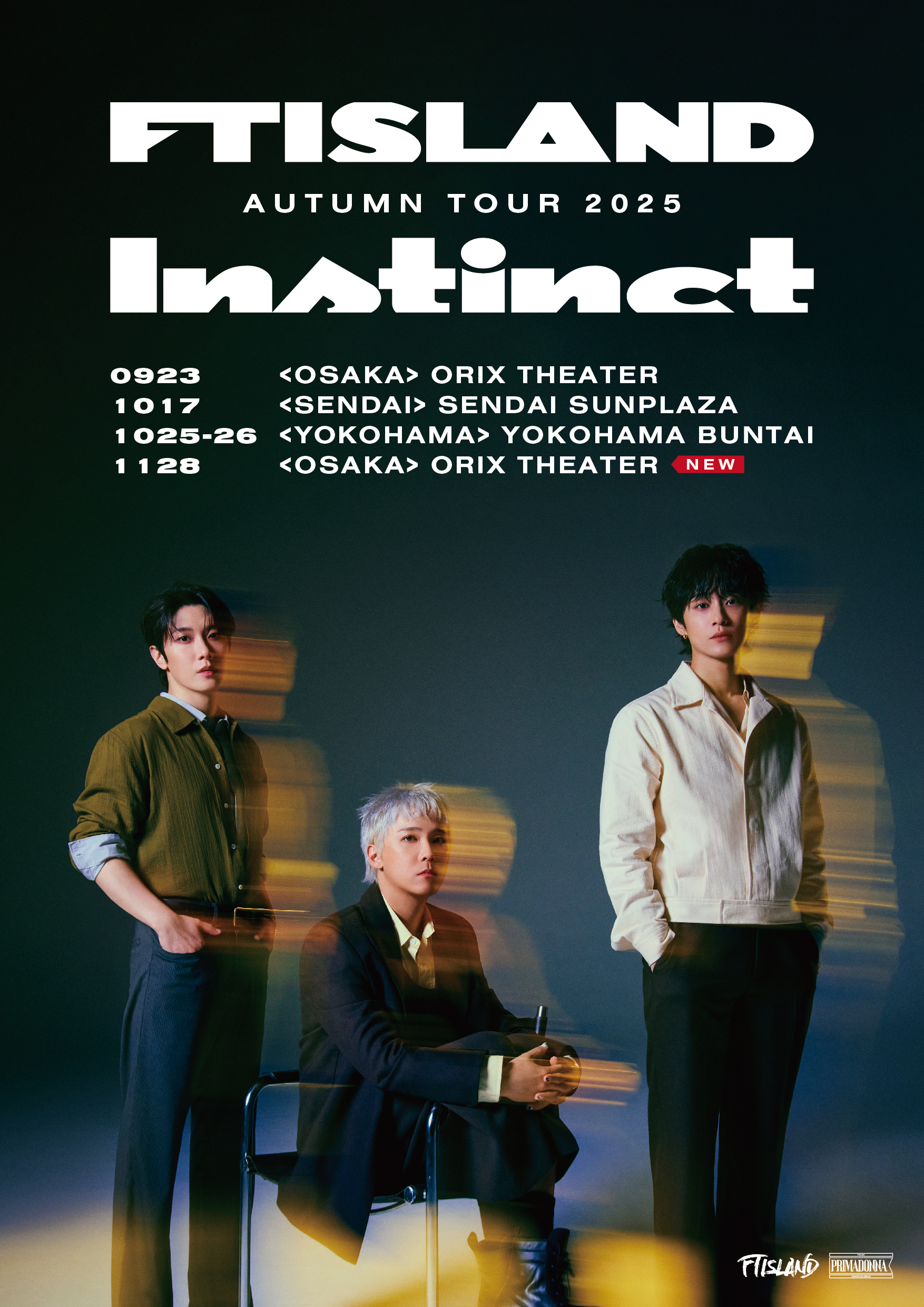 現在開催中の「FTISLAND AUTUMN TOUR 2025 ~ Instinct ~」。ファンの皆様からの熱い希望により、11月28日(金)に大阪・オリックス劇場にて追加公演の開催が決定いたしました!