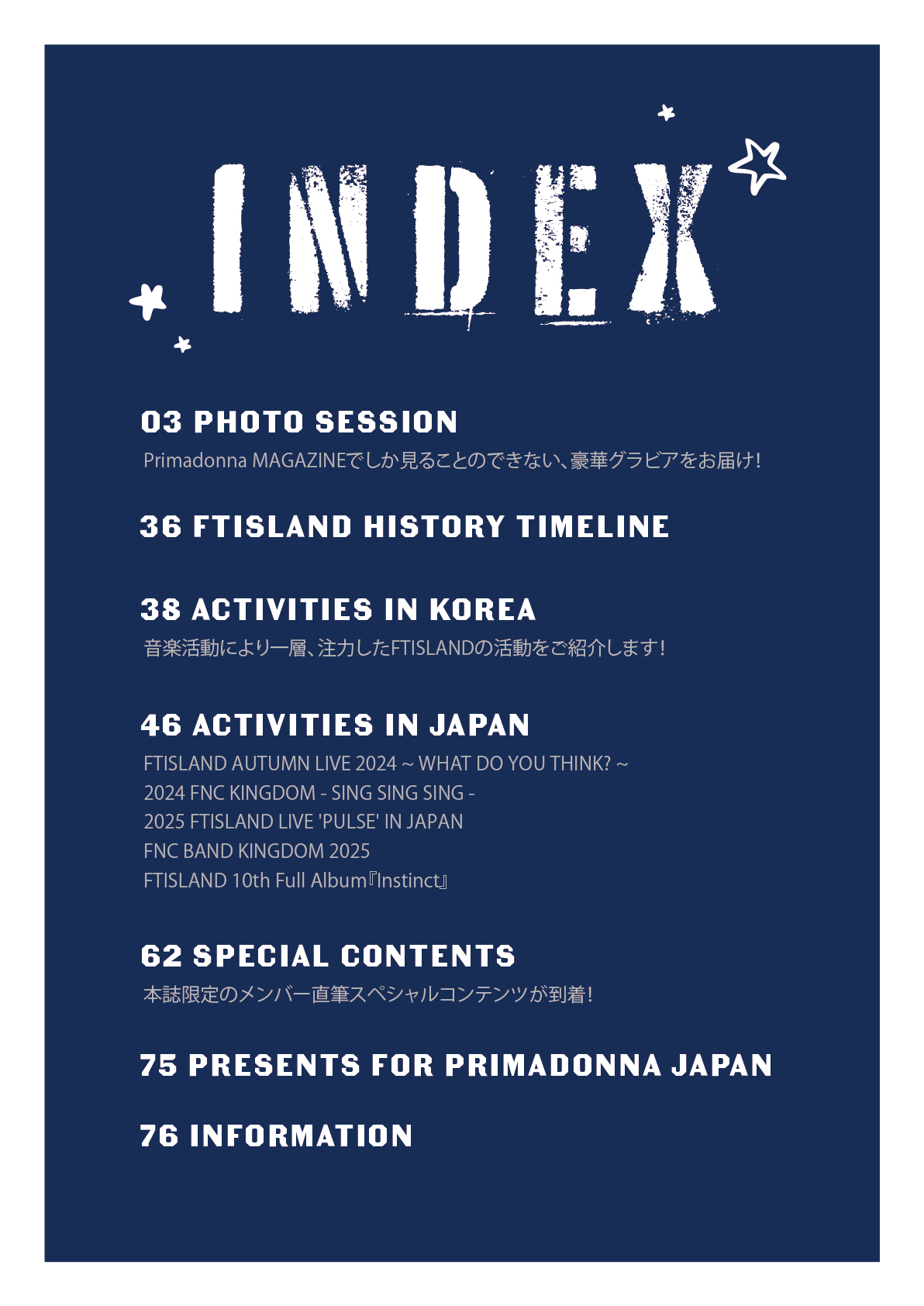 30ページ超の豪華グラビアページはじめ、音楽活動に注力した2025年の韓国での活動紹介、未公開ライブフォトを含む日本公演のライブレポートなど、FTISLANDの魅力を凝縮してお届け!